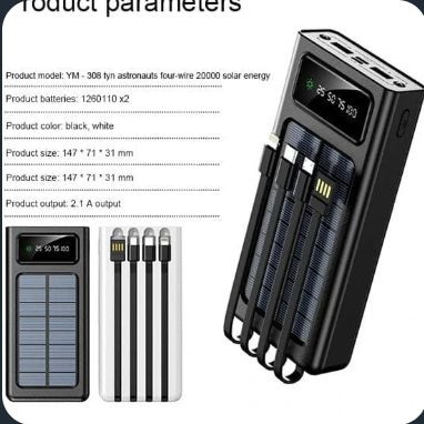 🔋⚡ پاوربانک خورشیدی 20000mAh هیولای شارژ با پنل خورشیدی + کابلهای 3گانه! 😍🔥 پاوربانک با ظرفیت 20000 میلی آمپر مدلZHY اگه همیشه بیرونی، دائم کارتی، یا جاییه که پریز کم پیدا میشه… این پاوربانک 20000 میلیآمپری دقیقا همون چیزیه که زندگیتو نجات میده! 😎💥 🌟 ویژگیهای جذاب و کاربردی • 🔋 ظرفیت واقعی 20000mAh • 🌞 پنل خورشیدی فعال (شارژ اضطراری زیر نور آفتاب) • 🔌 کابلهای سهگانه متصل: – Micro – Lightning – Type‑C • ⚡ 2 پورت خروجی USB برای شارژ همزمان • 🔄 درگاه شارژ Type‑C و Micro • 📟 نمایشگر درصد شارژ واقعی • 🔦 چراغقوه قوی برای استفاده اضطراری، کوه، سفر، کمپینگ 🛍ارسال